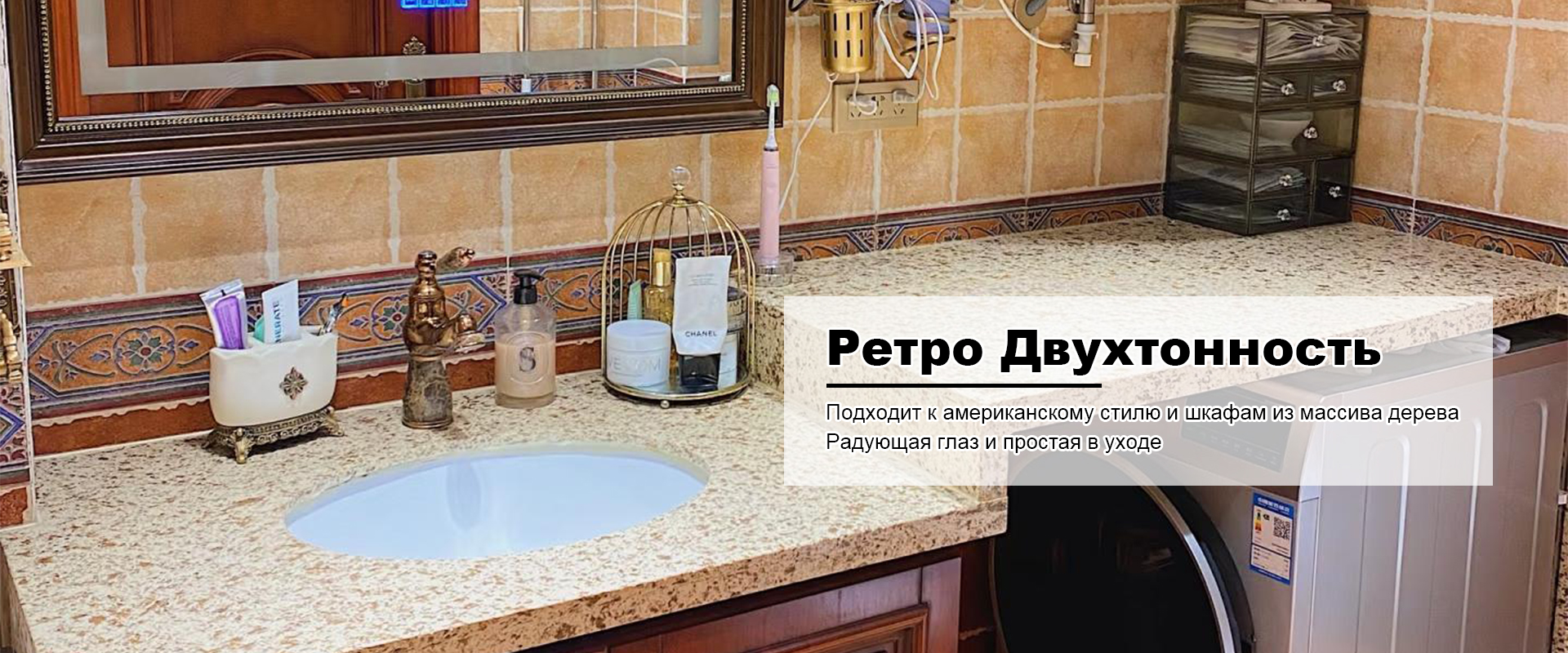 Кварц обладает высокой ударопрочностью, хорошей гибкостью, устойчивостью к растрескиванию, стыки могут быть приближены к бесшовным. Имеет более 20 видов технологий обработки кромок. Использование высококачественного сквозного кварца может сделать эффект еще лучше.